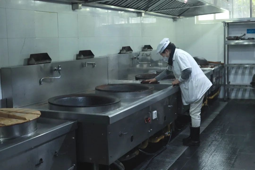 十几台炉灶擦拭一新,后厨隔间干净整洁,空气中还弥漫着消毒后的细小雾气。2月10日上午,记者来到学校看到,食堂阿姨已经提前上岗,做清洁、摆桌椅,一切还是原来的样子。除了食堂用餐区,校方按照区教育局要求对整个校园进行消杀,落实做好卫生工作。