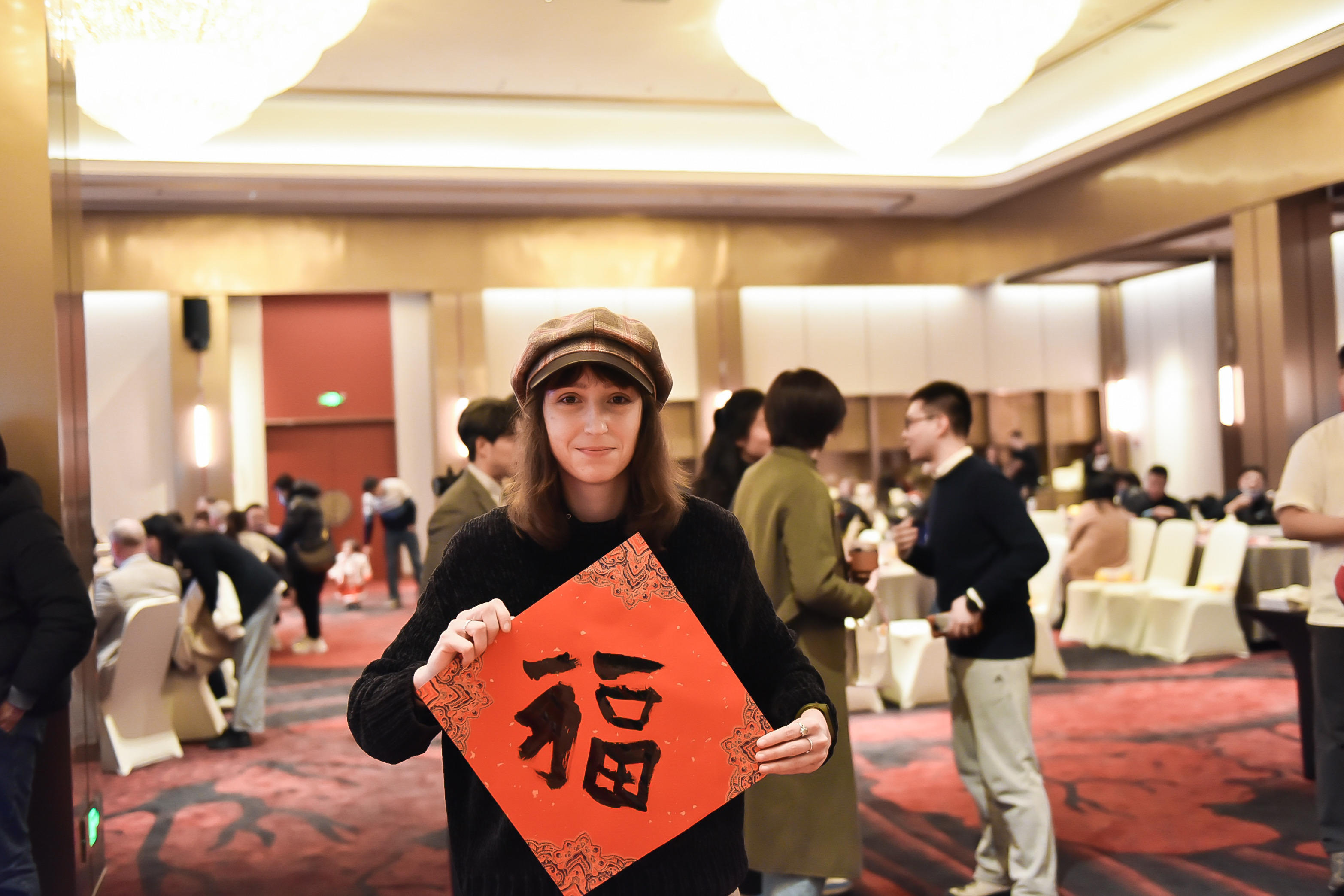 来自法国的乐盖曦,2015年留学来到上海,从此与这座城市结下不解之缘。这次是她第一次参加在沪外籍人士迎新联谊,同时体验多项中国非遗技艺。在书法大师的指导下,她提笔、蘸墨写起了喜庆的春联和“福”字,与书法大师交流汉字文化。她希望将中国和海派文化传播给更多人知晓。
