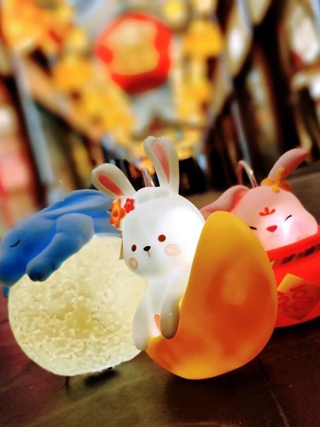 “老外讲故事”俱乐部成员热情高涨,在中心广场观飞天的玉兔东升,在九曲桥赏从山海书卷图中“复活”的仙草瑞兽。新年“一灯难求”的网红文创产品兔子灯,也为外国友人们带来不少乐趣。