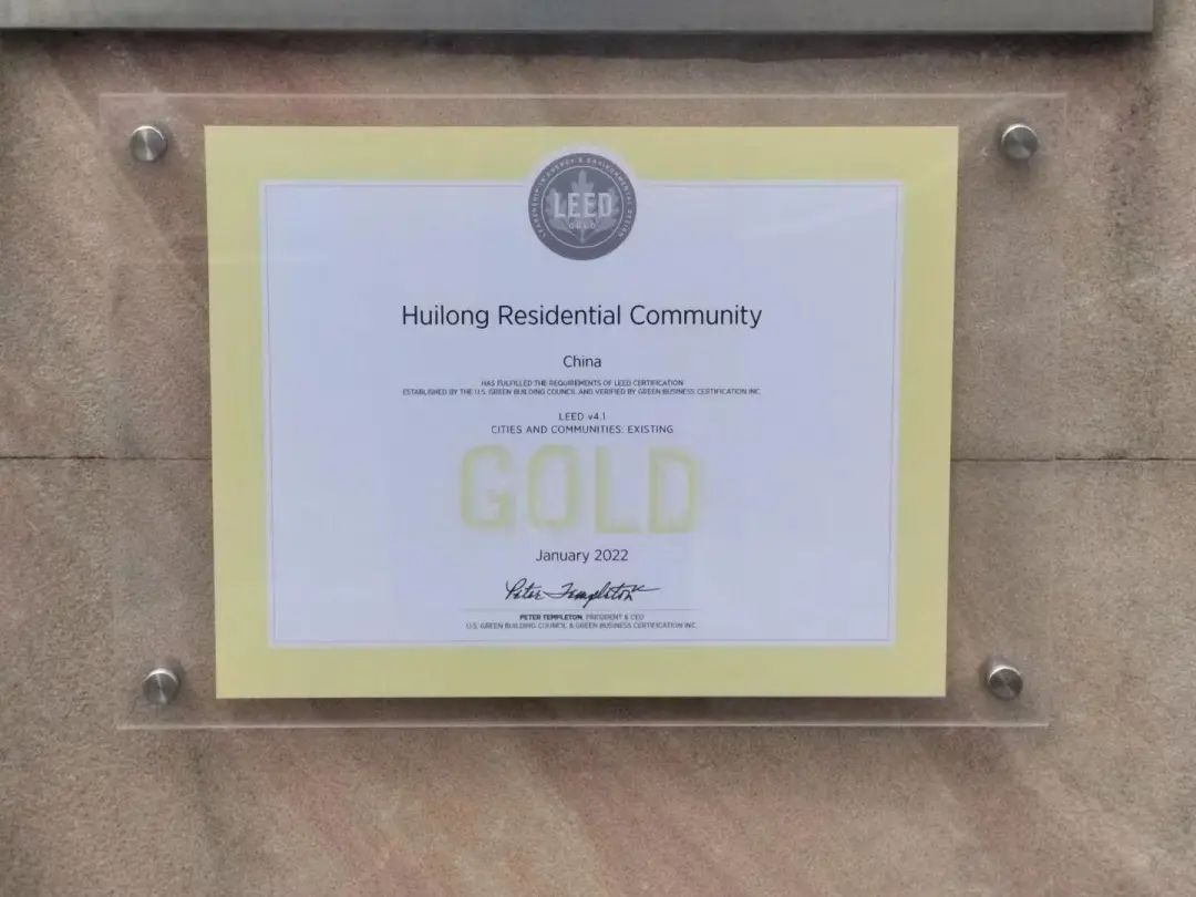去年伊始,黄浦区汇龙新城小区成功获得国际LEEDv4.1既有社区金级认证,成为全球第二、亚洲第一个获得此项殊荣的小区。2月10日,这张含金量极高的证书在居民期待和骄傲的目光中,郑重地悬挂在小区的大门口,而这个 “亚洲之最” 的突破,蕴藏着汇龙居民区党总支进行低碳升级改造的决心和匠心。
