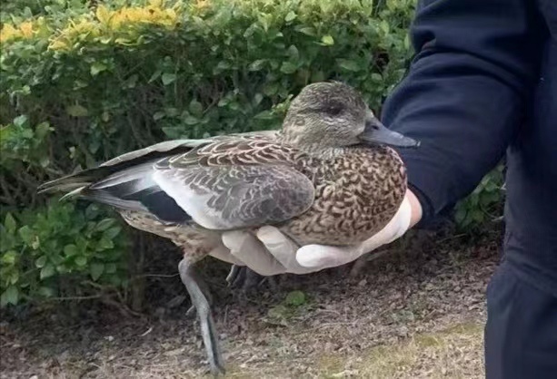 民警立即赶赴现场查看,发现这只野鸭无法正常飞离,靠近抓住后,检查其身上没有明显外伤。查看资料得知,该野鸭名为罗纹鸭,系国家“三有”保护动物。民警与野生动物救护站取得联系后,工作人员将该只移动迟缓的罗纹鸭带回救护站作进一步饲养观察。