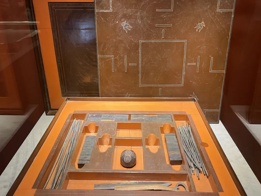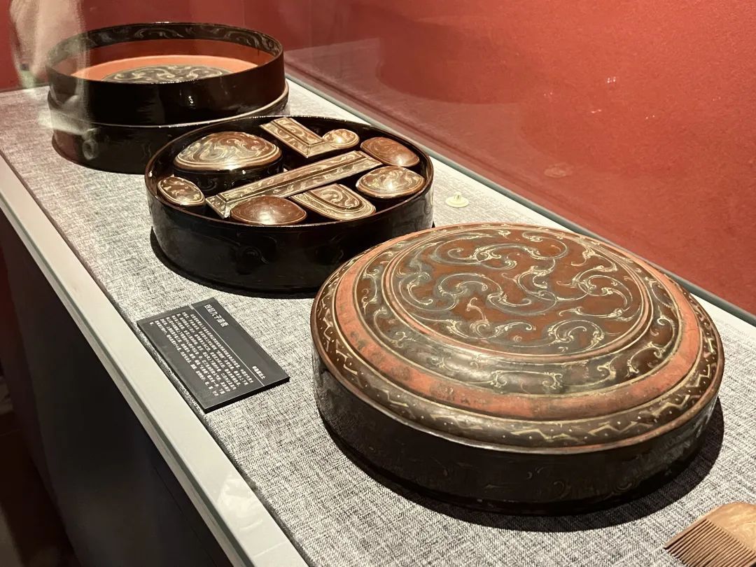 基于此大量汉初珍品得以重见天日,本次展览中漆器光洁如新、色彩饱和度较高。徐迪说,当时盛行“一漆十金”的说法,指的是一件漆器顶得上十件青铜器。比如,从湖南博物院借展的国家一级文物双层九子漆奁,是辛追夫人生前使用的化妆盒,外观看是一个完整的漆盒,内里却有九个精巧小盒,长短曲直各异。