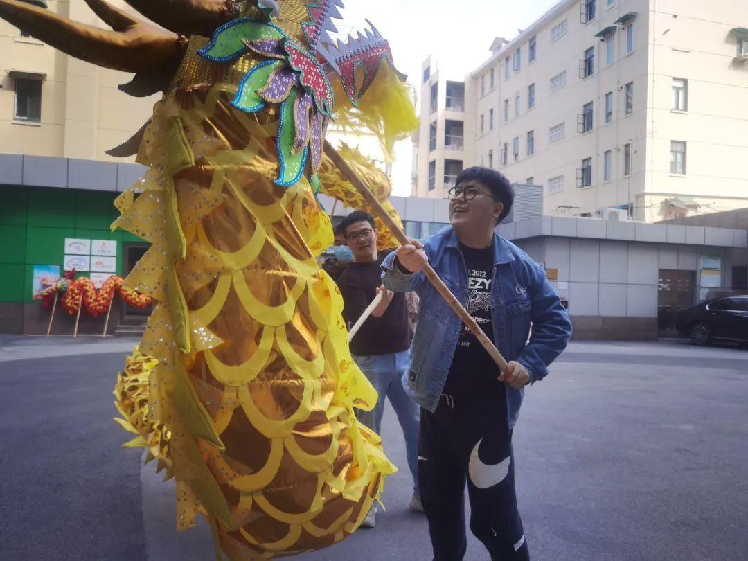 台上一分钟,台下十年功。龙头要威武壮观,龙身要保持圆滑、顺畅,不能触地、脱节、打折,龙尾在舞动时要时刻保持左右、上下晃动,体现龙的生气与活力。舞龙看似容易,实则很难掌握,为了成就金龙翱翔九天、翻腾云际的非凡气势,街道特地邀请了专业的舞龙老师前来对社工们进行指导和训练。