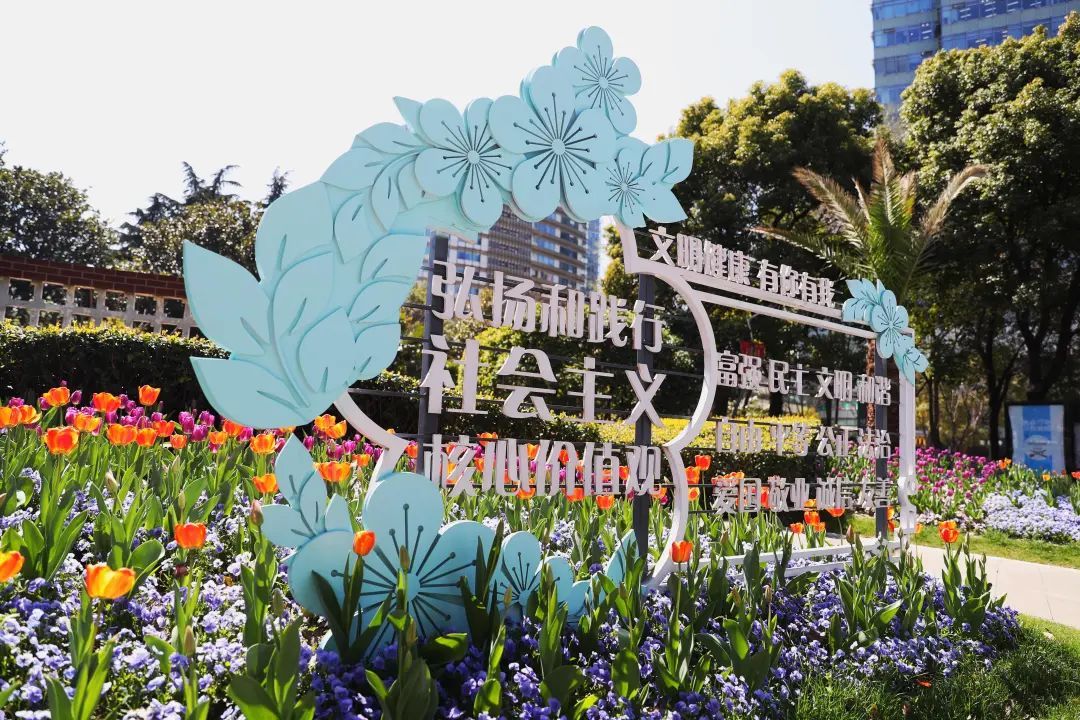 刚入园,映入眼帘的便是一块弘扬和践行社会主义核心价值观的标牌被成片的花卉所包围,对外宣传的同时也在提醒游客文明游园。