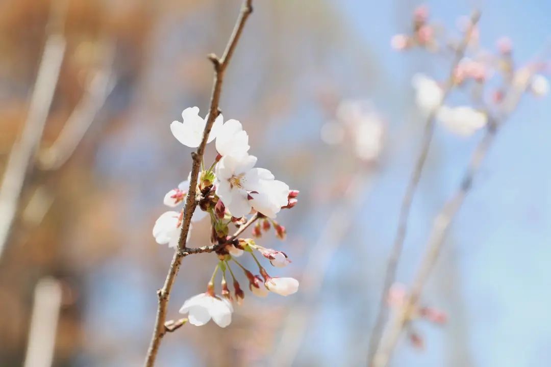 相比开得热烈的郁金香,樱花则显得“低调”了许多。大抵现在仍是郁金香的高峰期,或许再过一周,申城即将迎来大面积的樱花盛开。