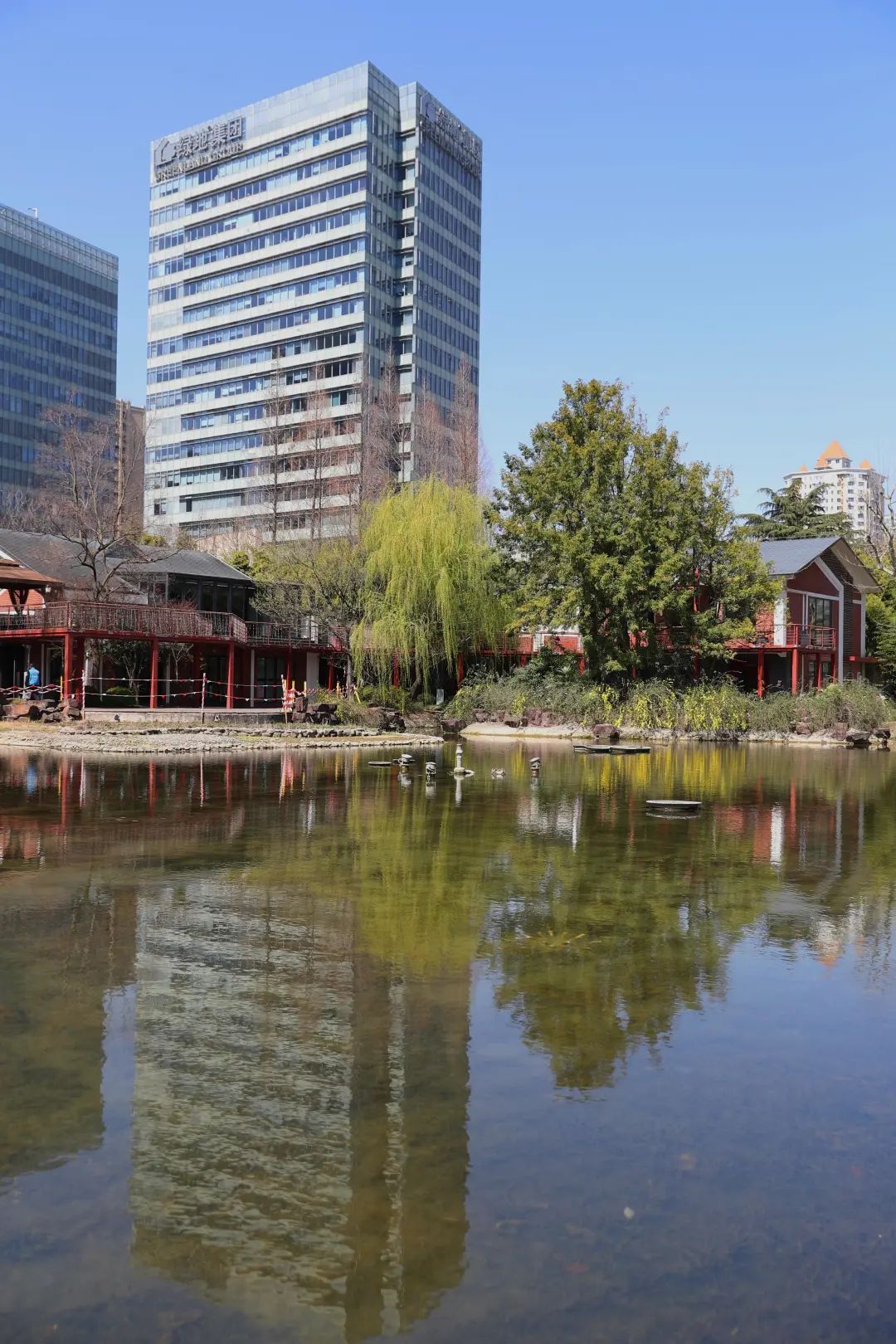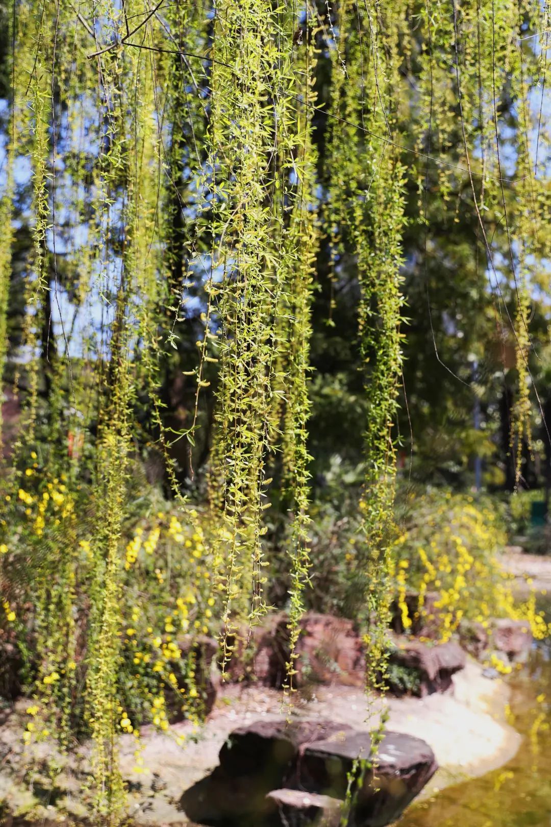 远远望去,轻垂的柳条好似万千飘动的绿色丝带,带给了游客早春的气息。