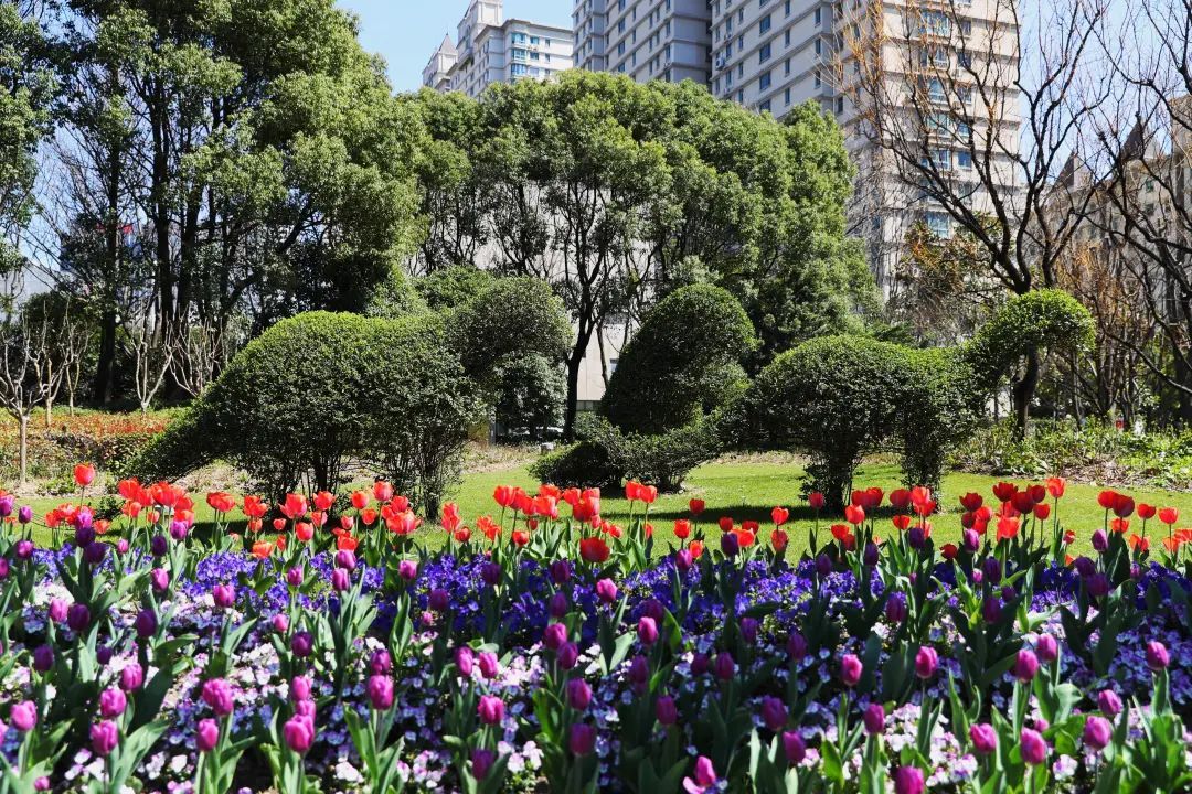 3月中旬,各地的花卉争先恐后盛开。坐落于龙华东路800号的南园滨江绿地,各色郁金香开得烂漫而又绚丽,无形中将这个位于卢浦大桥下的公园点缀成一片漂亮的“花海”。
