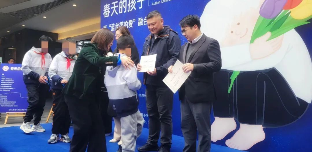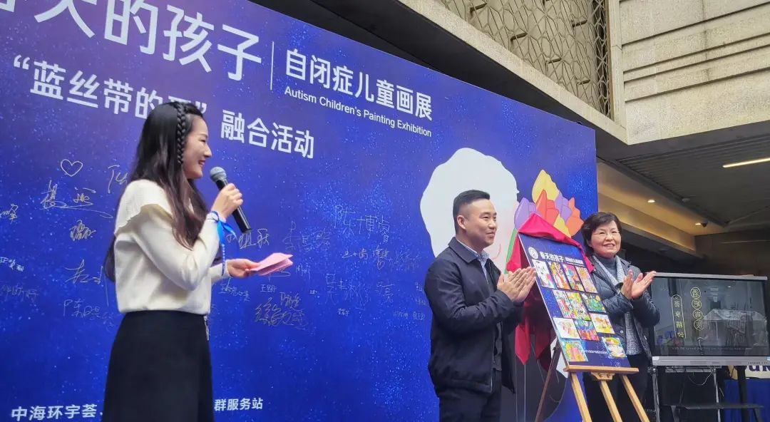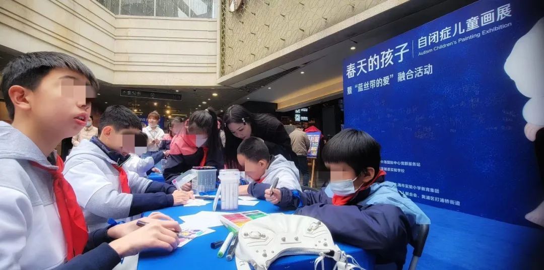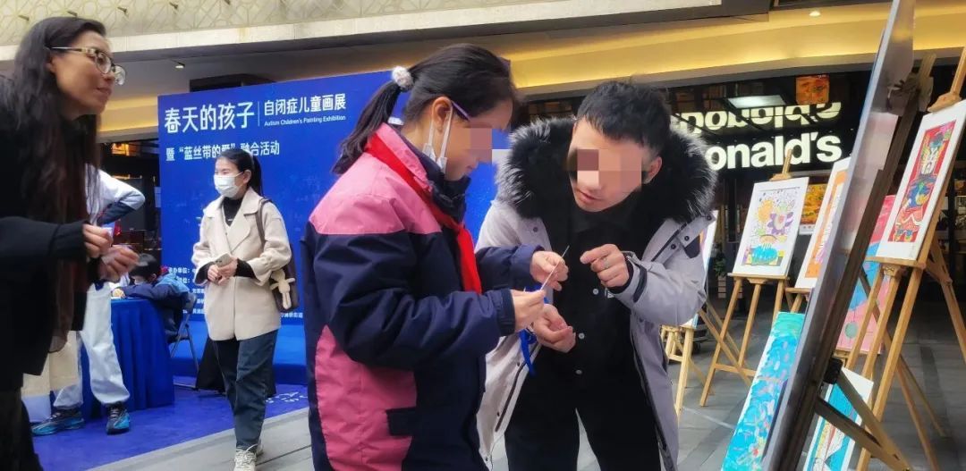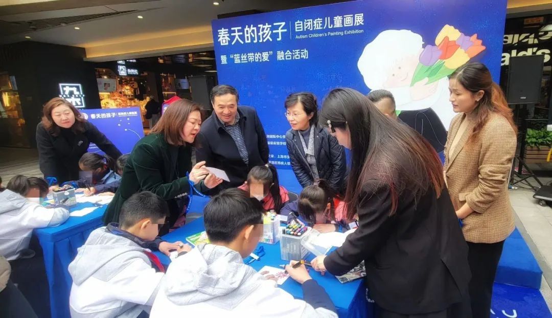 4月2日是第16个“世界自闭症关注日”。华东师范大学附属卢湾辅读实验学校联合梵蒂斯美术学校将孩子们的作品再生成,制作完成了“走近春天的孩子”系列主题明信片,并于3月31日在中海环宇荟B1层举办了一次别开生面的“蓝丝带的爱”融合活动。本次活动的策划、组织和安排联动了教育、残联、街道、商界等多方爱的力量聚集,大家共赴爱的盛宴。