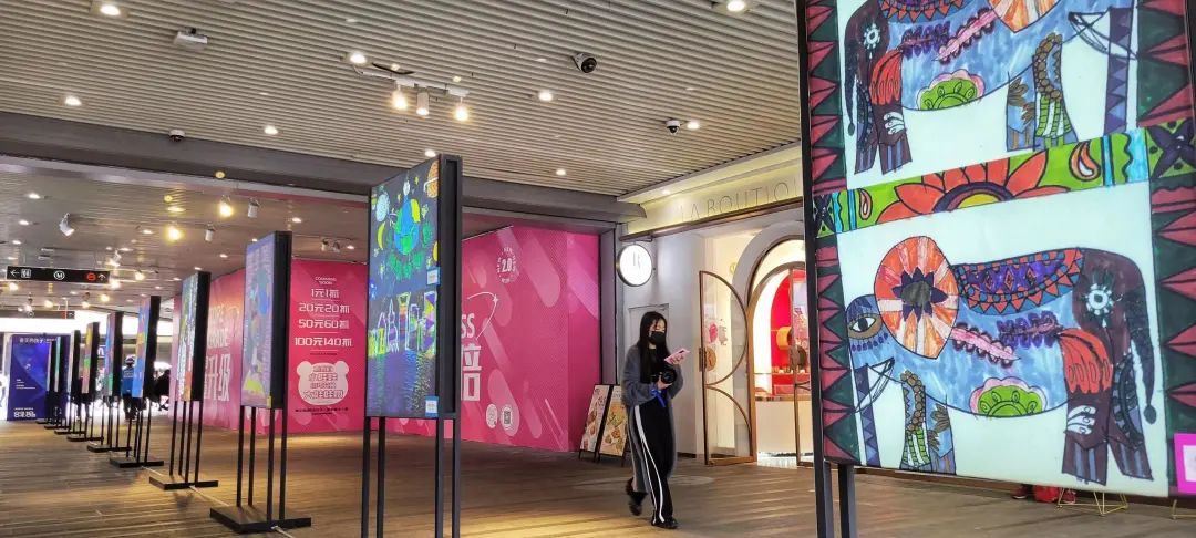 在黄陂南路中海环宇荟“春天的孩子/自闭症儿童画展”涂鸦区,路人们留下了一句句温暖的话语。而展览区这些天马行空、色彩斑斓的画作,均出自华东师范大学附属卢湾辅读实验学校的学生们之手。他们在老师的指导下,用笔和颜料代替语言,画出了心中的美丽世界。