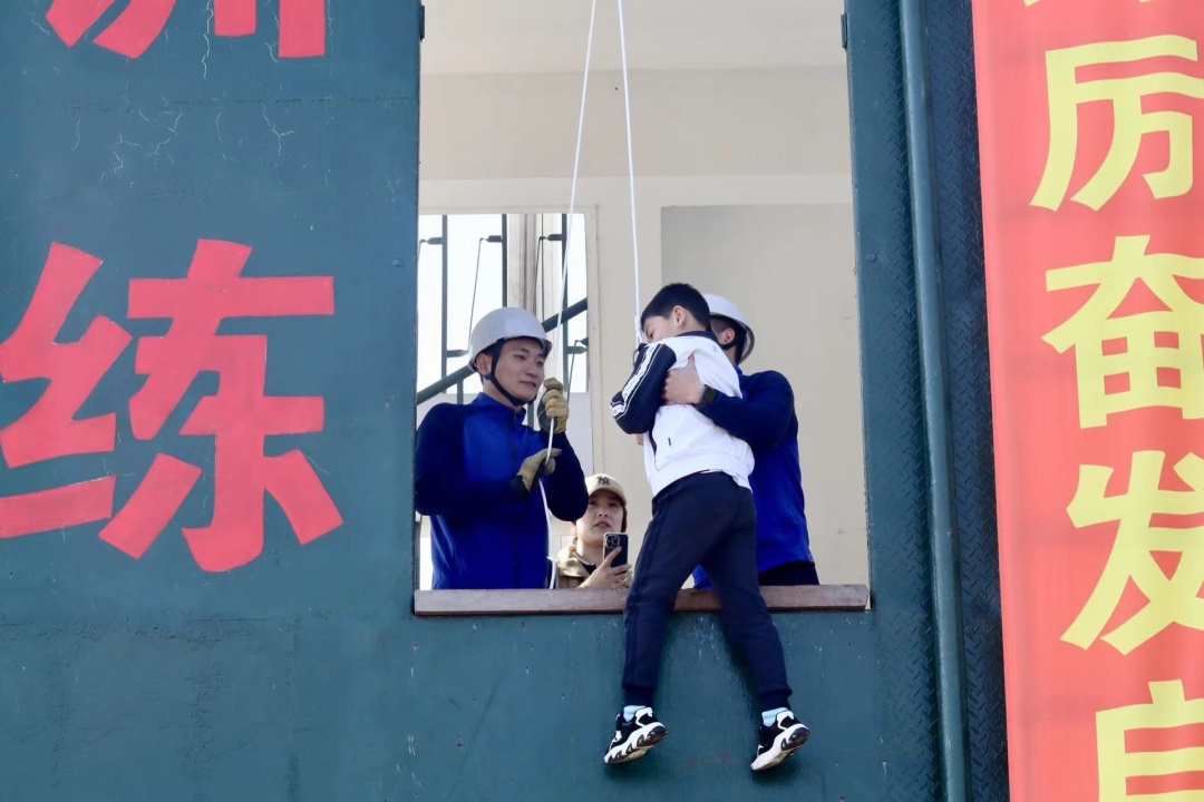 消防队员首先向孩子们展示了攀爬六米拉梯、滑绳自救、缓降器下降等训练科目,孩子们近距离观看消防技能展示,对各种精彩动作发出了由衷赞叹。消防员还给大家展示了灭火服的穿戴和各类随身装备。看到这些神秘的灭火服,在场的孩子们忍不住试穿起来。“这衣服又热又重,火场的温度更高,消防员太不容易了。”在场的孩子说道。