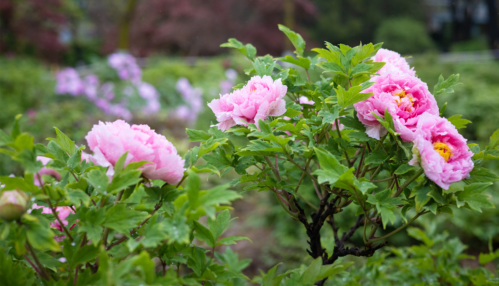 蒙蒙春雨中来到济南泉城公园,满园牡丹呈现出别样风情。牡丹雍容华贵、富丽端庄、婀娜多姿、芳香浓郁,细雨淋湿的花朵更鲜亮、娇艳,红色的灼灼如火,白色的玉骨冰心,紫色的端庄秀丽……牡丹的魅力雨中尽显,让人陶醉。
