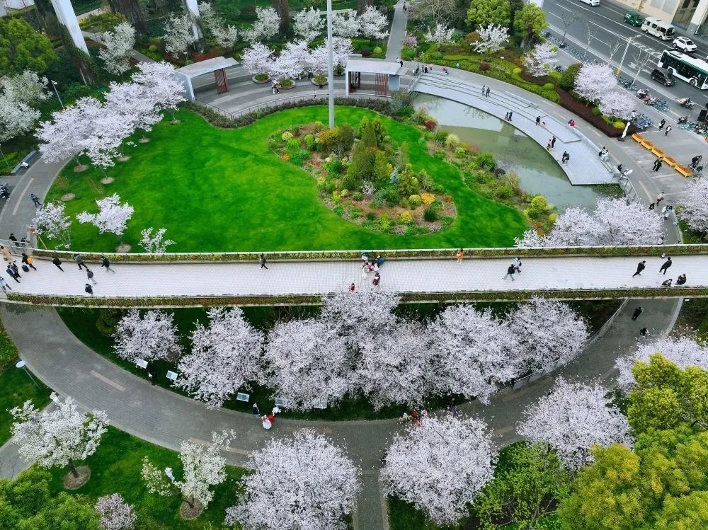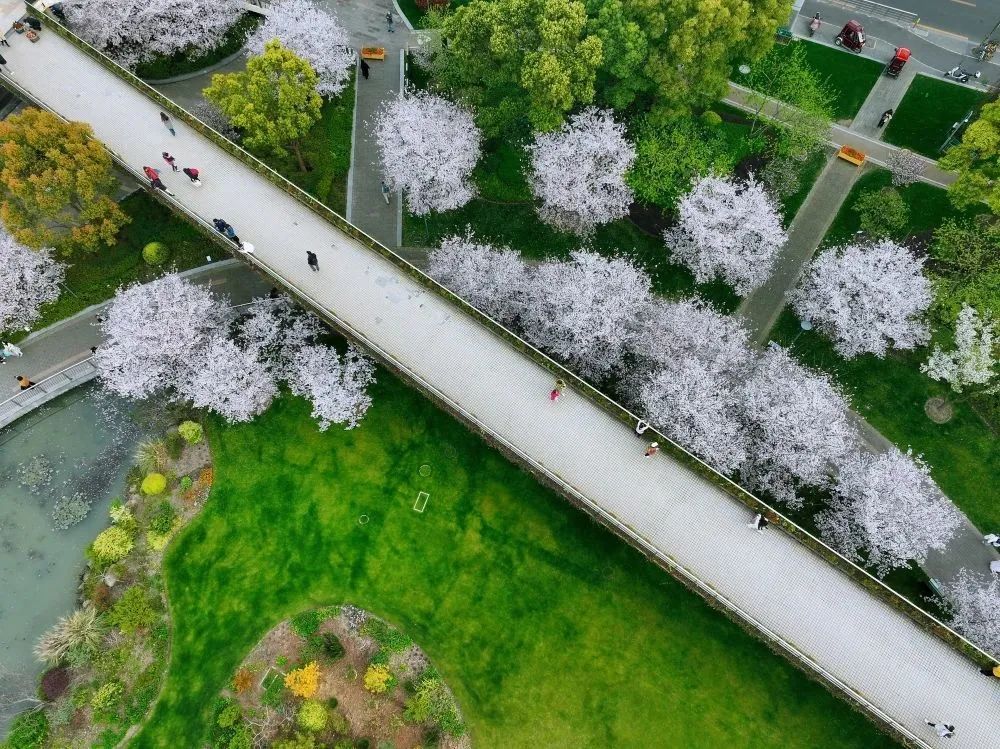 今天,我们带你换一个视角——俯瞰静安中环公园和静安雕塑公园,一起感受“春花烂漫,艳压枝头”!