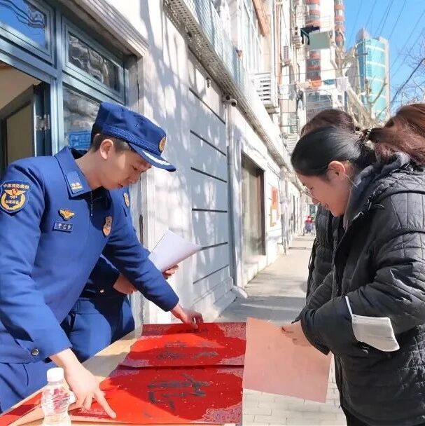 答消防知识送春联“福”字,静安消防开展安全宣传活动