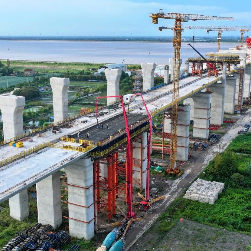 崇启公铁长江大桥北引桥最后一榀支架现浇梁浇筑完成