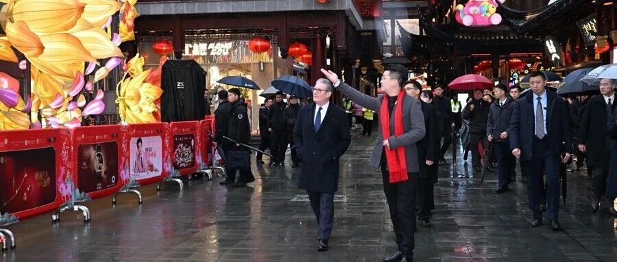 冒着细雨,英国首相斯塔默游豫园买小吃看花灯