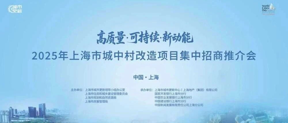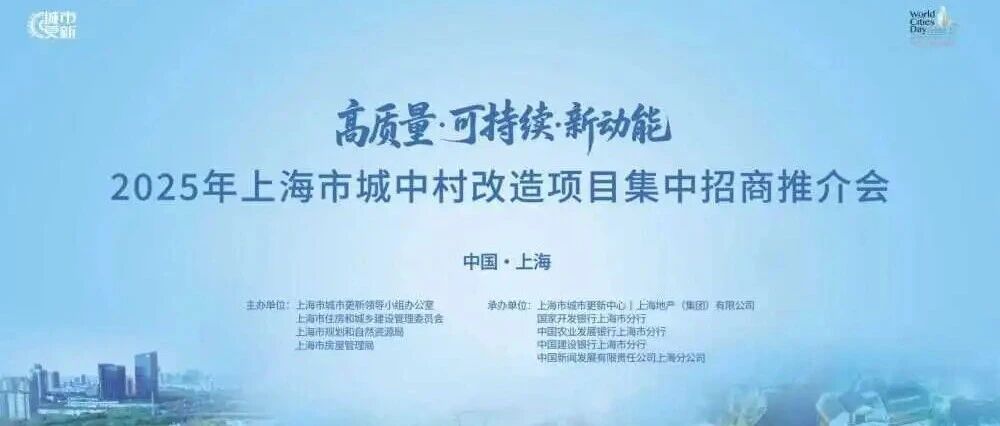 2025年上海市城中村改造项目集中招商推介会举办在即
