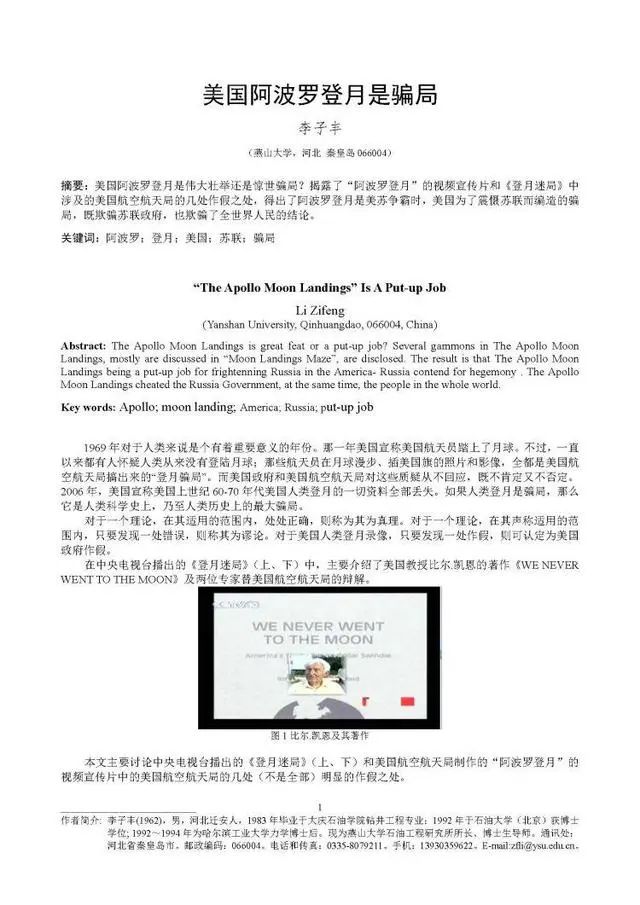 据报道,他对二十世纪的两个伟大科技成果——爱因斯坦的相对论和美国阿波罗登月进行了系统的研究,结论为:爱因斯坦的相对论是错误的,美国阿波罗登月是骗局。