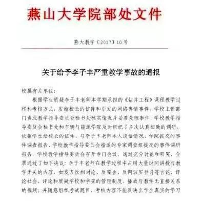 通报指出,李子丰在教学过程中占用大量时间讲授与教学无关的内容,如发表反相对论、反霍金、反阿波罗登月等言论;随意组织考试题目,考核内容不能反映出学生真实的学习效果,致使考核结果出现极不合理的成绩分布。
