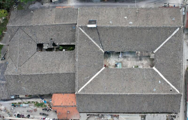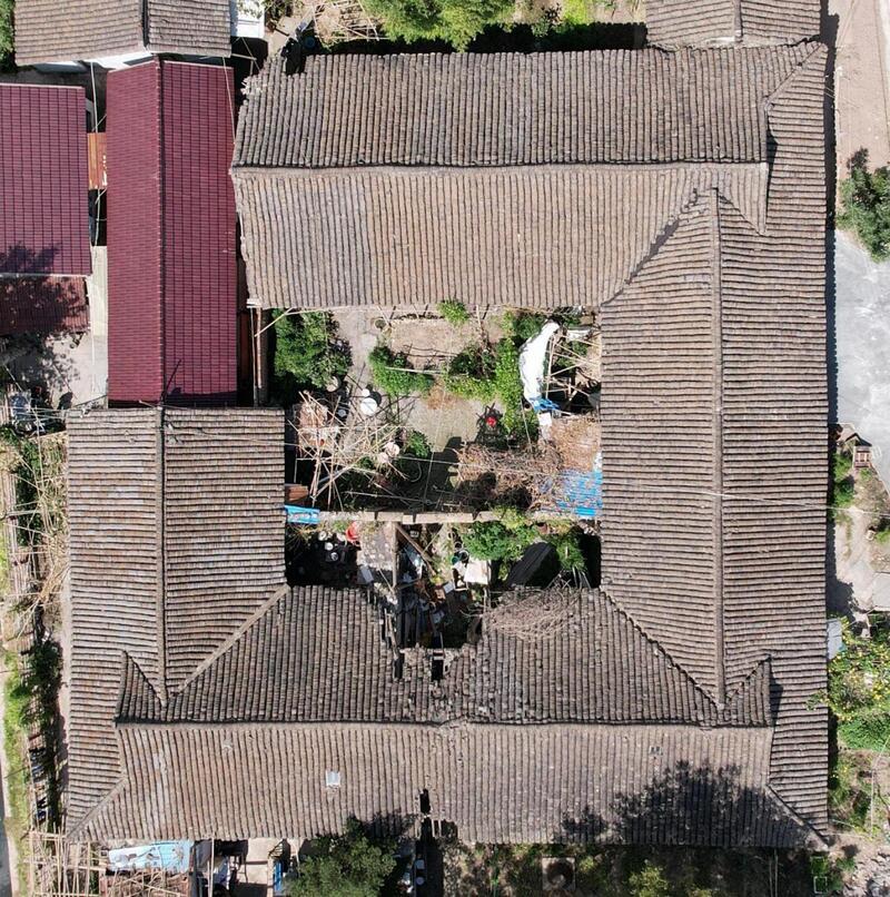据其描述,老屋平面形态与笔者航拍到的坦直的一座绞圈房类似,只是后者建于民国。目前发现的专业意义上的绞圈房约始于清道光,止于民国。
