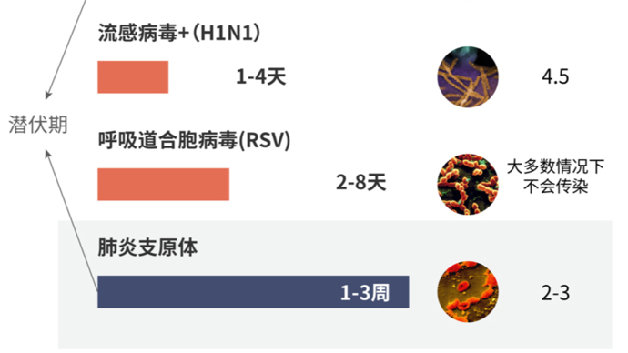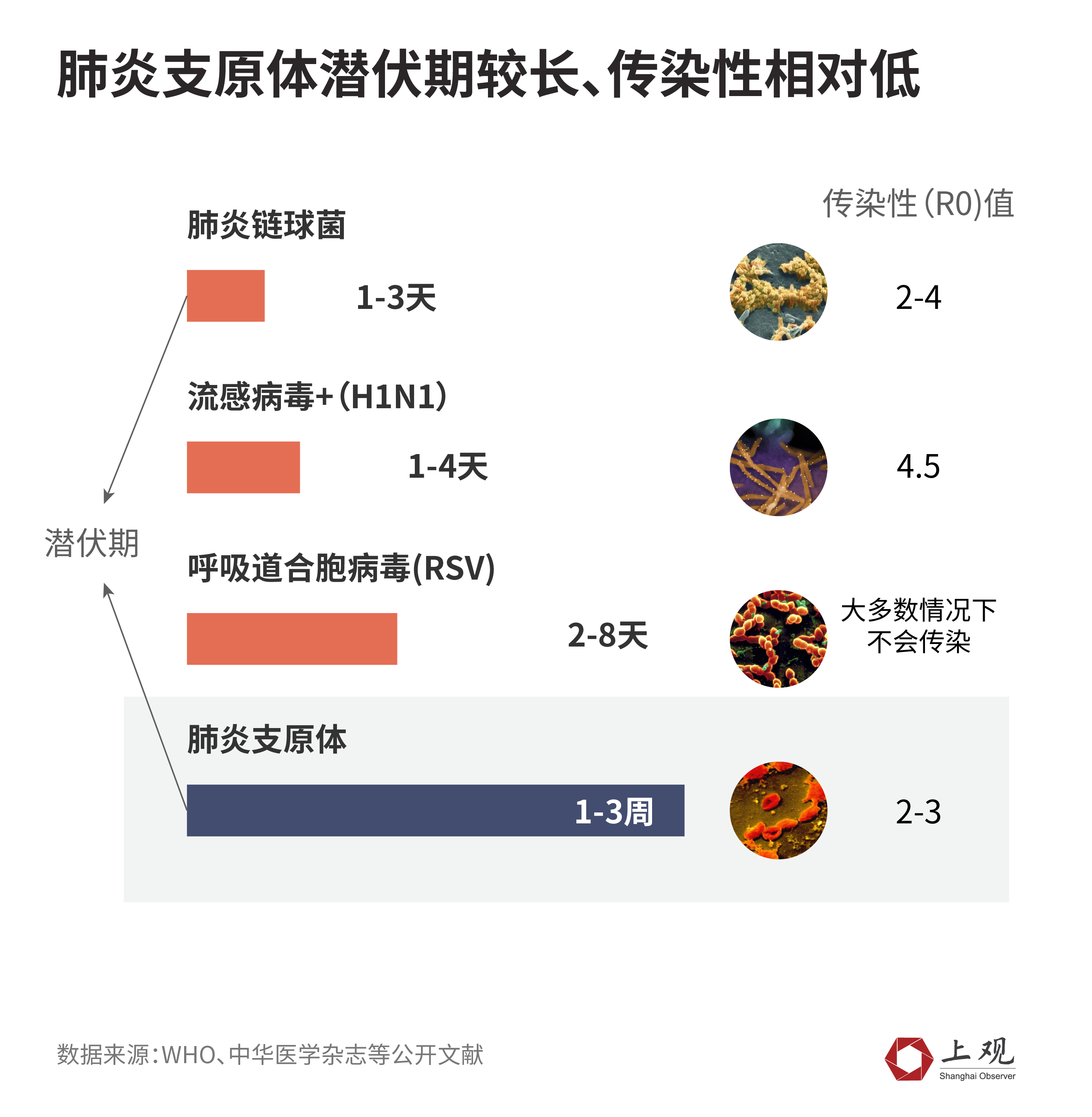 这篇研究指出,这可能是因为肺炎支原体繁殖所需的时间更多,潜伏期更长(1-3周),且传播率相对较低。