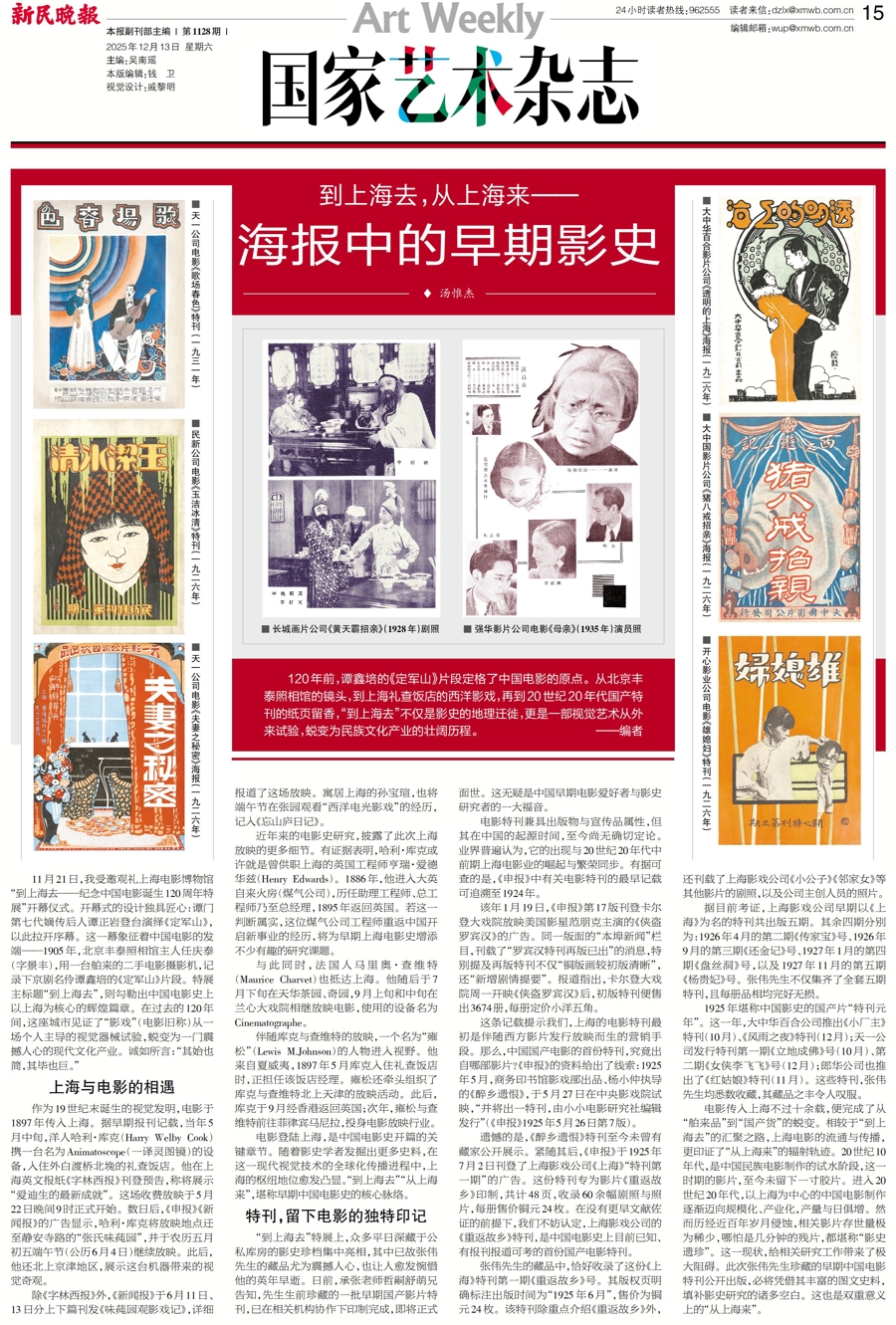 120年前,谭鑫培的《定军山》片段定格了中国电影的原点。从北京丰泰照相馆的镜头,到上海礼查饭店的西洋影戏,再到20世纪20年代国产特刊的纸页留香,“到上海去”不仅是影史的地理迁徙,更是一部视觉艺术从外来试验,蜕变为民族文化产业的壮阔历程。 ——编者