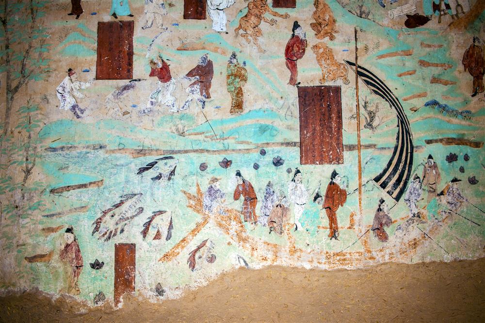20世纪70年代末,尔冬强去敦煌采风,此后不断西进,但脑子里的问号越来越多。1700多年前发生在吴淞江口的佛教史迹故事“石佛浮江”,为什么出现在莫高窟第323窟的南壁上?今朝、明朝、气力、相骂、盘缠、蓬尘,这些让他熟悉的吴地方言,为什么出现在敦煌变文里?扁舟、木板船、庐船、楼船、双尾船还有扯帆的海船,这些在莫高窟壁画上描绘的舟船是江南的舢板和帆船吗?摇橹、划桨、撑篙、张帆,这样一幅图景难道不是江南水乡的风情画?他看到江南和敦煌之间的关系千丝万缕,沿着长江逆流而上,吴语成了贯穿其中的密码。